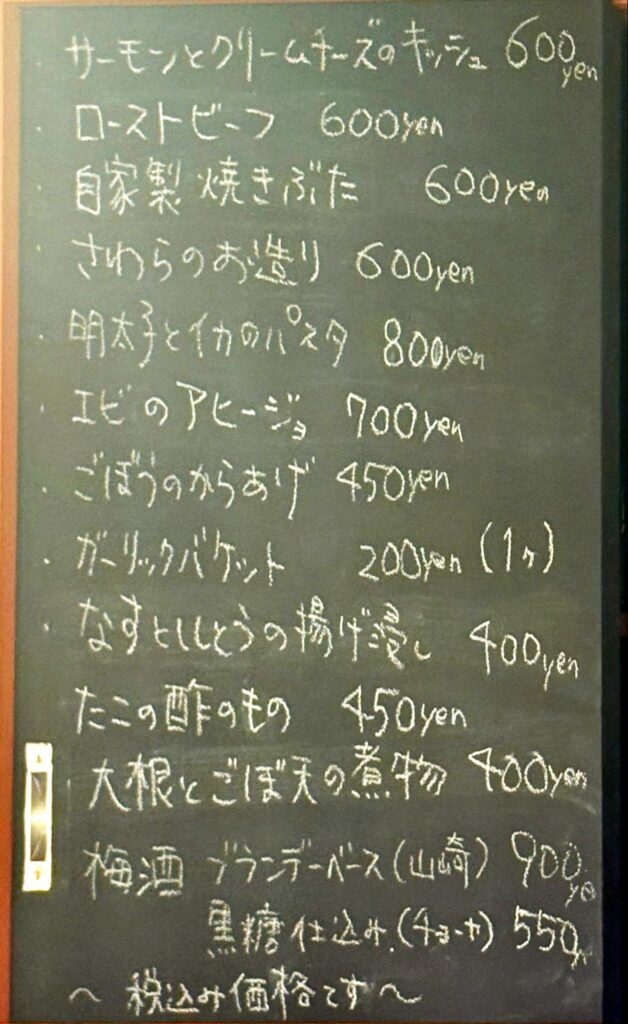 ある日の黒板メニュー